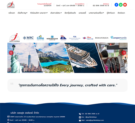 เวบไซต์ joyfulholidays.com ให้ความไว้วางใจเราในการจัดการ ออกแบบ และพัฒนาเวบไซต์ โดยมีระบบหลังบ้านสำหรับจัดการข้อมูลบนหน้าเวบไซต์